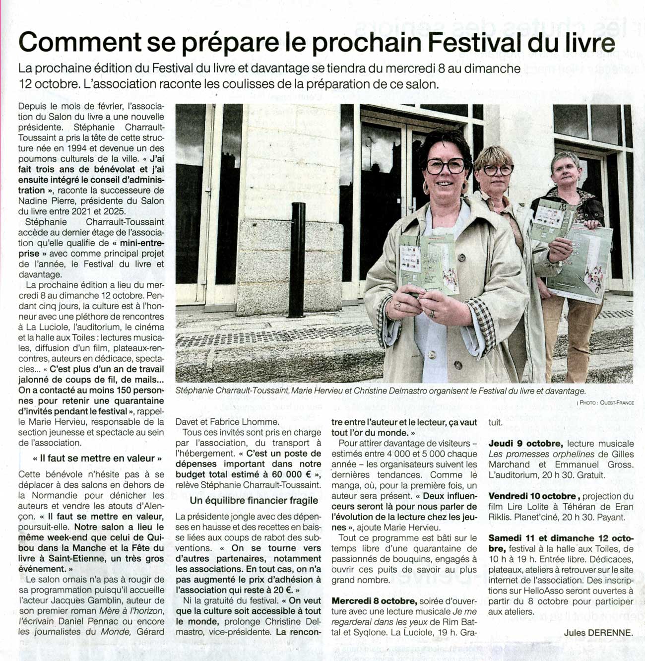 2025-05-18 L’autrice Sylvia Allouche remporte le prix A-Fictionados à Alençon ouest France, 18 mai 2025